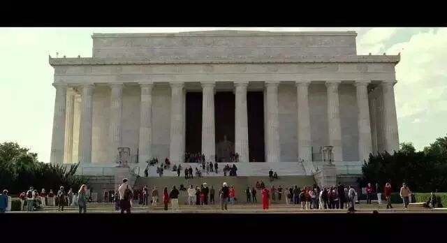 2 【阿甘正传】 是否还记得那一幕?穿着帅气军装的阿甘从越南战场回到美国,阴差阳错地混入反战人士阵营,在林肯纪念堂和倒影池之间发表沉默的演讲,尴尬时刻,珍妮从天而降,两人在众位反战人士的注视下,在倒影池中相会拥抱。